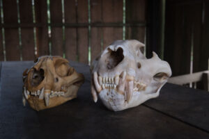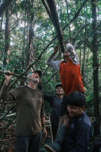 A quelques mètres du centre du village, nous empruntons un petit sentier nous menant directement au cœur de la jungle. Une courte ballade de deux heures qui nous mène vers les premières cascades et grottes de ce voyage. L’opportunité d’apprivoiser et de contempler ce nouvel environnement verdoyant. Angel, ancien du village, nous parlera davantage de l’histoire de son peuple. Dans le courant de l’après-midi, nous en apprenons davantage sur la situation du territoire et des outils de défense mis en place par la communauté pour la préservation des terres et de leur culture face à l’industrie minière. En fin d’après midi, nous allons placer une caméra piège dans la forêt afin d’observer la faune autour de l’auberge où nous vivons durant ce séjour.
