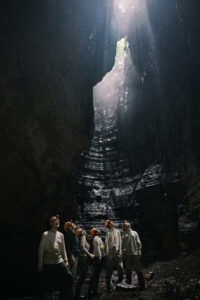 Nous partons pour l’expédition vers la cueva de los Tayos. Depuis le village, deux heures de marche essentiellement en montée sont nécessaires pour atteindre la grotte. Le guide local et plusieurs personnes de la communauté Coangos préparent les cordes pour descendre au fond de la grotte. 60 mètres de descente verticale dans les entrailles de la Terre. Arrivés en bas, nous prenons la direction d’une grande ouverture où la lumière du jour tapisse les parois rocheuses. Le chant des nombreux oiseaux appelés « tayos » donnent une énergie incroyable à cette grotte emplie de mystères. Nous partons ensuite explorer la grotte et son réseau de cavités selon l’envie des participants (la ballade peut être réduite sans problème). Nous traversons un monde de roches fait de stalagmites, de stalactites et de cascades souterraines où nous pouvons nous baigner. Rafraîchis, nous passons la nuit au cœur de la grotte. Une expérience inoubliable nous connectant à la dimension spirituelle du peuple shuar.
