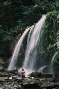 Nous partons pour une marche de 2 heures à travers une jungle luxuriante en direction de la cascade sacrée. Là bas, nous en apprenons davantage sur la cosmovision shuar et leur étroite connexion à la nature, faisant partie de leur vie spirituelle. La cérémonie à son terme, nous savourons un pique-nique en bordure de rivière avant de nous enfoncer au cœur du territoire en direction de la maison de Marco, l’un des anciens de la communauté. Une grosse journée de marche pour un lendemain plus reposant.