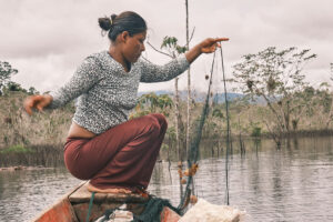 Nous déjeunons au sein de la communauté avant de reprendre la pirogue traditionnelle en direction d’une lagune isolée (environ 1h30 de navigation). Nous serpentons les rivières amazoniennes pour atteindre un véritable havre de biodiversité.